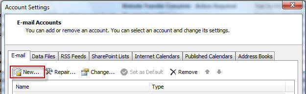 Step 2. Click on "New" under the Email Accounts screen.