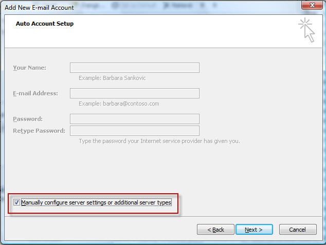 Step 6. Fill in the form as shown below, using your email information: